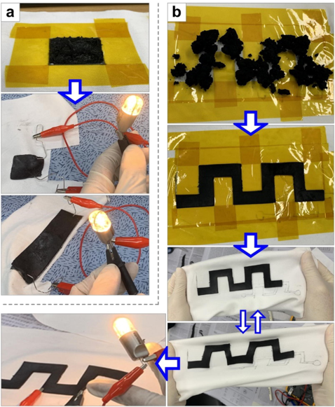 Demonstration of durable electronic textiles via mechanically assisted highly adhesive printing of carbon nanotube-polymer composites on commercial fabrics