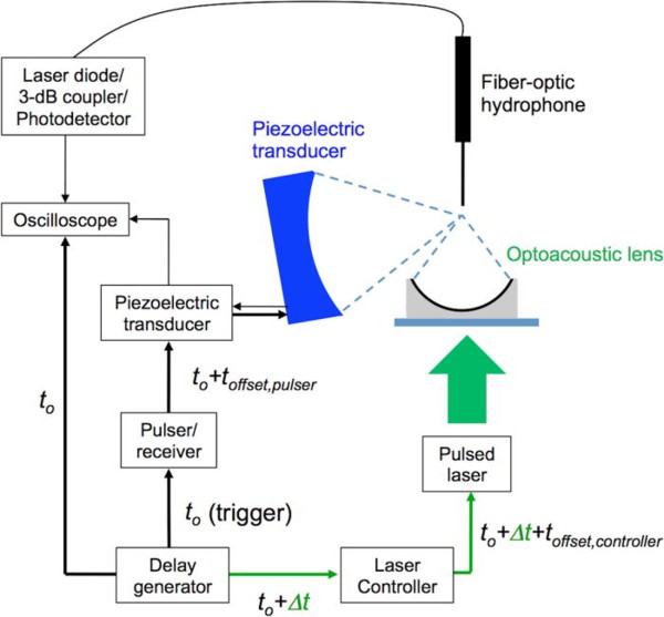Dual-frequency focused ultrasound using optoacoustic and piezoelectric transmitters for single-pulsed free-field cavitation in water