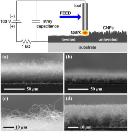 Uniformity enhancement of carbon nanofiber emitters via electrical discharge machining