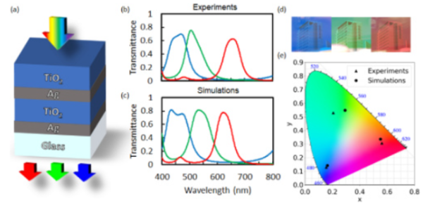 We present quad-layered structural color filters producing transmissive red (R), green (G), and blue (B) colors with high brightness and high purity, where thicknesses of layers for the RGB colors are optimized by using a L-BFGS-B algorithm. To evaluate the performance of the proposed structural color filters, computer-based inverse designs based on meta-heuristic and reinforcement learning algorithms are employed, where the optical properties obtained from the inverse designs are comparable to those shown in our proposed design. A peak separation phenomenon in dual cavities is applied to make a spectral response rectangular, and also a resonance order is optimally tailored to maximize the transmittance at a resonant wavelength with the suppression of undesired higher-order resonances at the same time for achieving pure colors. Transmission efficiency over 75% and the full width at half-maximum (FWHM) less than 90 nm are achieved. Besides, selecting a cavity medium with a high refractive index allows the optical properties of the structural color filters to remain almost constant in wavelength over a broad range of incident angles up to 60°. Moreover, only a few deposition steps are necessary, thus leading to a much simple fabrication as compared to previous works that involve a series of complicated lithographic processes. The approach described in this study may provide new ways for achieving diverse applications, such as displays, imaging devices, decorations, and colored solar cells.