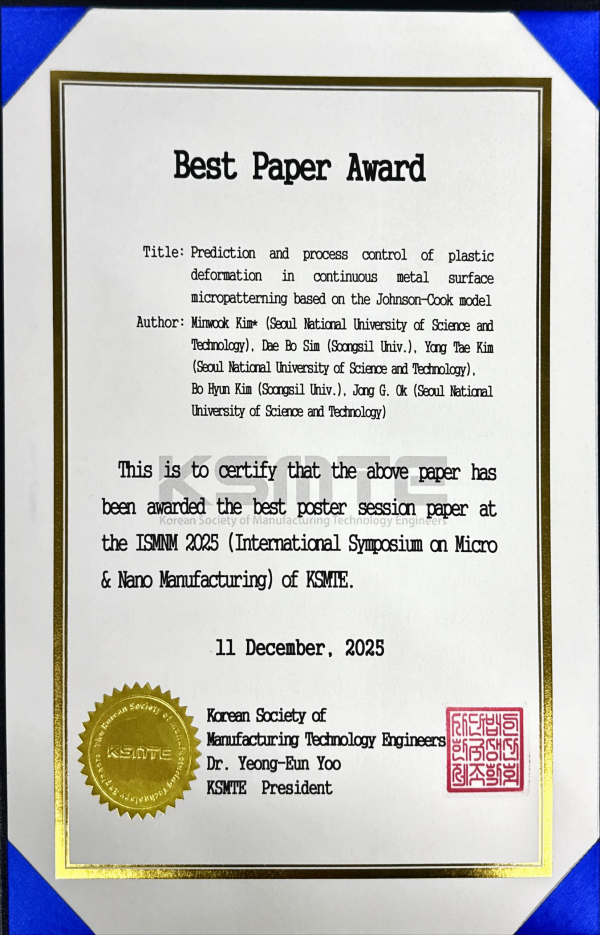 - Next Kwangjun Kim et al. were awarded the Best Award in 2025 KMAES 25.12.18
