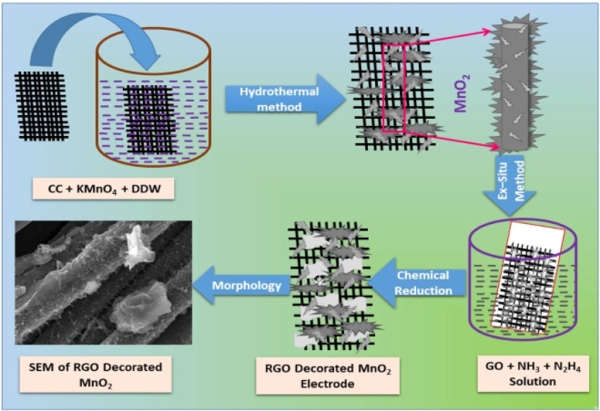Synthesis and electrochemical characterizations of RGO-decorated MnO2 nanorods/carbon cloth-based wearable symmetric supercapacitors