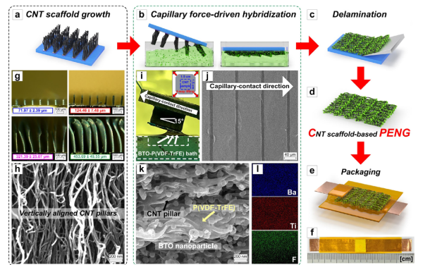 Multistackable, domino-overlapped CNT scaffolds homogeneously hybridized with BTO-P(VDF-TrFE) for high-performance piezoelectric nanogenerators